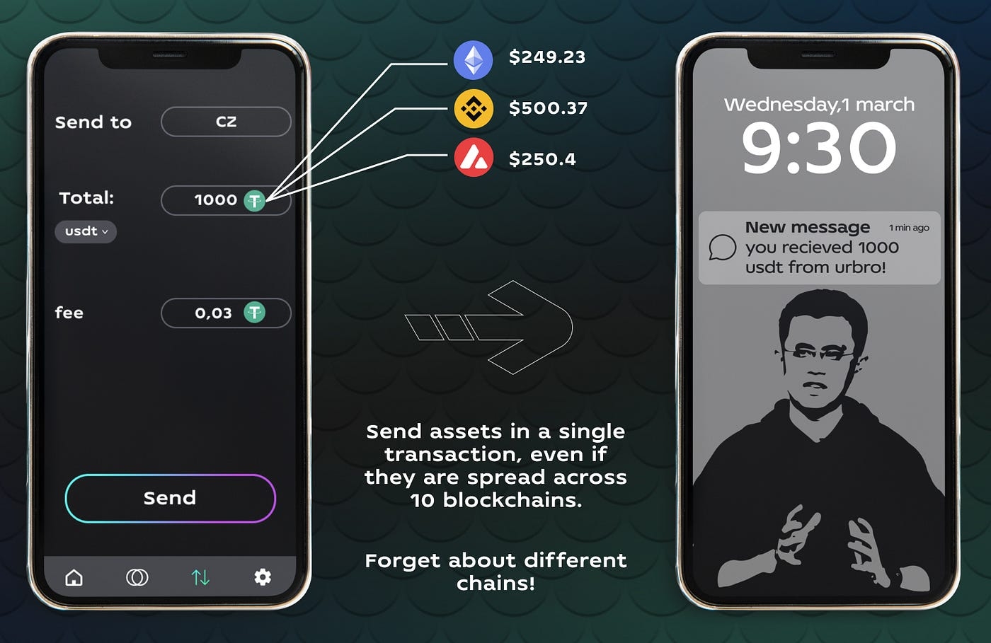 ⚡️ Send an asset in two clicks, even if it’s distributed across 10 blockchains. Forget about different chains!